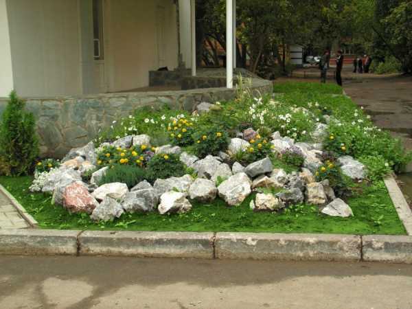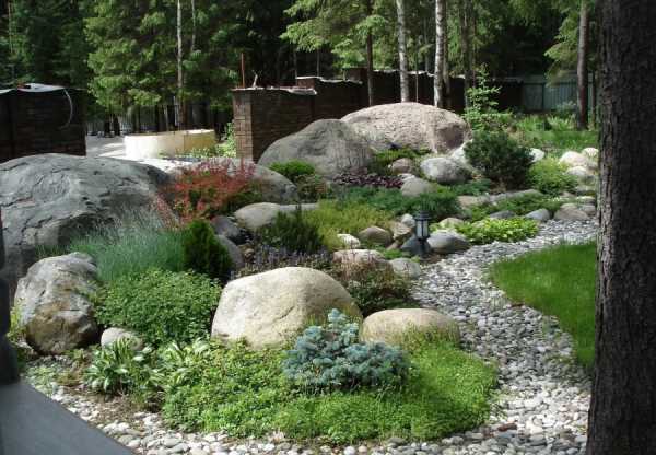 ΠΡΠ»ΠΈ ΠΏΠ»ΠΎΡΠ°Π΄Ρ ΠΏΠΎΠ΄ ΡΠ°Π΄ ΠΊΠ°ΠΌΠ½Π΅ΠΉ Π±Π΅Π· Ρ ΠΎΠ»ΠΌΠΎΠ², ΡΠΎ Π½ΡΠΆΠ½ΠΎ ΠΏΠΎΡΡΠ°Π²ΠΈΡΡ ΡΡΠ΄Π° ΠΊΠ°ΠΌΠ½ΠΈ Π±ΠΎΠ»Π΅Π΅ Π³Π»Π°Π΄ΠΊΠΈΠ΅, Π° Π΅ΡΠ»ΠΈ ΡΠ΅Π»ΡΠ΅Ρ ΡΡΠΊΠΎ Π²ΡΡΠ°ΠΆΠ΅Π½Π½ΡΠΉ, ΡΠΎ Π»ΡΡΡΠ΅ Π±ΡΠ΄ΡΡ ΡΠΌΠΎΡΡΠ΅ΡΡΡΡ ΠΎΡΡΡΠΎΡΠ³ΠΎΠ»ΡΠ½ΡΠ΅ ΠΊΠ°ΠΌΠ½ΠΈ. ΠΡΠΊΠ»Π°Π΄ΡΠ²Π°ΡΡ ΡΠΎΠΊΠ°ΡΠΈΠΉ ΡΠΎΠ»ΡΠΊΠΎ ΠΎΡΡΡΡΠΌΠΈ ΠΊΠ°ΠΌΠ½ΡΠΌΠΈ Π½Π΅ Π½ΡΠΆΠ½ΠΎ, ΡΡΠΎ Π±ΡΠ΄Π΅Ρ Π²ΡΠ³Π»ΡΠ΄Π΅ΡΡ Π΄ΠΎΠ²ΠΎΠ»ΡΠ½ΠΎ Π·Π»ΠΎΠ²Π΅ΡΠ΅. ΠΠ½ΠΈΠ· Π΄ΠΎΠ»ΠΆΠ½Ρ ΡΠΊΠ»Π°Π΄ΡΠ²Π°ΡΡΡΡ ΡΠ°ΠΌΡΠ΅ ΠΊΡΡΠΏΠ½ΡΠ΅ ΠΈ Π½Π΅ΠΏΡΠΈΠ²Π»Π΅ΠΊΠ°ΡΠ΅Π»ΡΠ½ΡΠ΅, Π° Π½Π°Π²Π΅ΡΡ ΠΏΠΎΠΉΠ΄ΡΡ ΡΠ΅, ΡΡΠΎ ΠΏΠΎΠΌΠ΅Π½ΡΡΠ΅ ΠΈ ΠΏΠΎΡΡΡΠ΅. Π ΡΠ΅Π½ΡΡ ΠΊΠΎΠΌΠΏΠΎΠ·ΠΈΡΠΈΠΈ ΠΆΠ΅Π»Π°ΡΠ΅Π»ΡΠ½ΠΎ ΠΏΠΎΡΡΠ°Π²ΠΈΡΡ ΠΎΠ΄ΠΈΠ½ Π±ΠΎΠ»ΡΡΠΎΠΉ ΠΊΡΠ°ΡΠΈΠ²ΡΠΉ ΠΊΠ°ΠΌΠ΅Π½Ρ, ΠΎΠ½ Π±ΡΠ΄Π΅Ρ ΡΠΎΠ·Π΄Π°Π²Π°ΡΡ ΠΊΠΎΠ½ΡΡΠ°ΡΡ ΠΌΠ΅ΠΆΠ΄Ρ ΡΠ΅ΡΠΎΡΡΡΡ ΠΈ Π·Π΅Π»Π΅Π½ΡΡ.