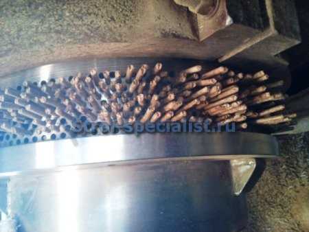 Общий диаметр заготовки следует выбирать под размеры шнека. Собранный прибор помещается в корпус из обреза трубы или сделанный из стального листа. В верхней части размещается раструб для помещения сырья. Проще всего его сделать из жестяного ведра без дна. Попадая на вал вращения, кормовая масса двигается вниз, к матрице, и, проходя через отверстия, попадает в выходное окно для пеллет.