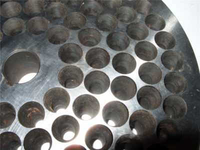 Если делать гранулятор своими руками, то проще всего оборудовать его плоской матрицей. На диске-заготовке вырезаются отверстия нужного диаметра. Толщина матрицы подбирается под диаметр отверстий. Например, на матрицу с ячейками 3 мм необходимо брать заготовку толщиной 20 мм. На более крупную сетку болванка увеличивается соответственно:
