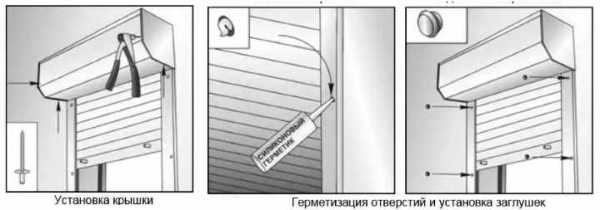 После монтажа полотна короб рольставней закрывают, снимают защитную пленку с их внешней части, ставят заглушки и герметизируют специальным силиконовым составом.