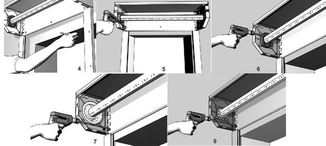 - После сборки, проверяют работу механизма, поднимая ролетту до верхней точки. Если она не удерживается, «съезжая» вниз, натяжение пружины оказалось недостаточным и надо произвести дополнительную регулировку.