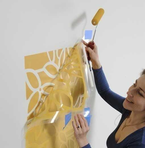 Для росписи стен вы можете использовать готовый шаблон или изготовленный на заказ в типографии. Такие трафареты могут быть гибкими или жёсткими, одно- или двухслойными (для создания многоцветного рисунка), самоклеящимися или бесклеевыми. Как правило, они прочные, плотно прилегают к стене и предназначены для многоразового пользования.
