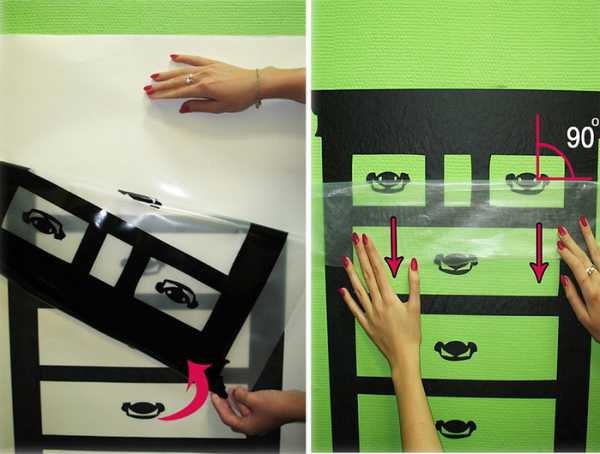 - Если вы используете прозрачную виниловую пленку, то вам нужно просто наложить ее на исходный рисунок, обвести его контуры фломастером или ручкой, затем вырезать ненужные сегменты (см. фото).