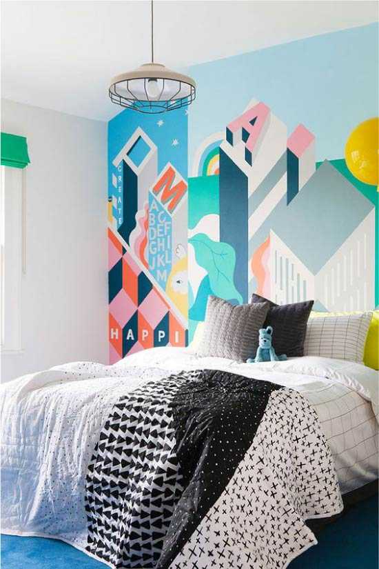 Кстати, с помощью рисунка на стене можно разделить пространство и обозначить границы какой-либо зоны.