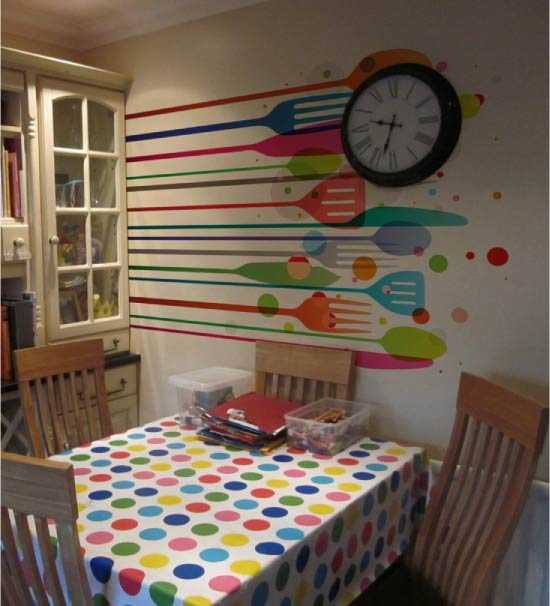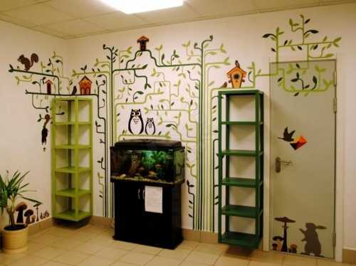 Также существует еще один альтернативный способ для росписи стен – наклейки на стену, которые имеют множество красивых цветов и оттенков. Достаточно просто примерить заранее наклейку на стене и аккуратно приклеить