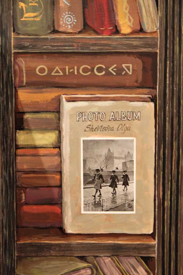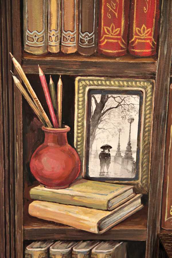 Я очень люблю свою семью и друзей, и мне хотелось, чтобы они внесли какую-то лепту в наш дом. Мы дали им задание: подумать, какую бы книгу в своей жизни они хотели написать. А когда была сделана настенная библиотека, мы поставили все эти произведения в шкаф. Художники нарисовали очень много книг, и каждая семья могла выбрать серию, цвет и толщину своих фолиантов, а потом надписать их.