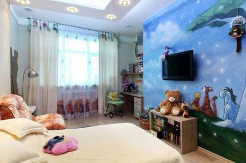 Трафаретная техника росписи стен очень удобна для декорирования детской комнаты.