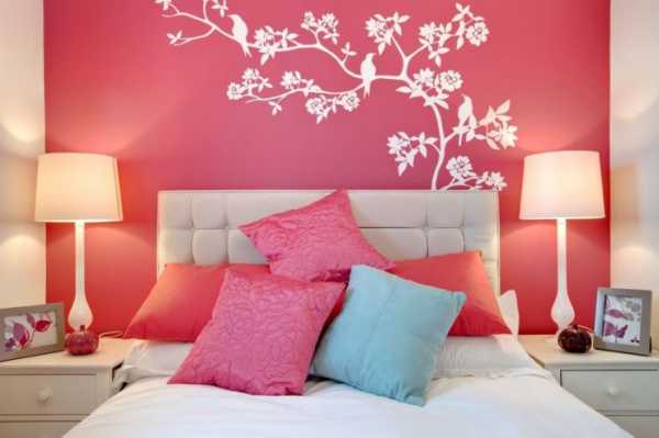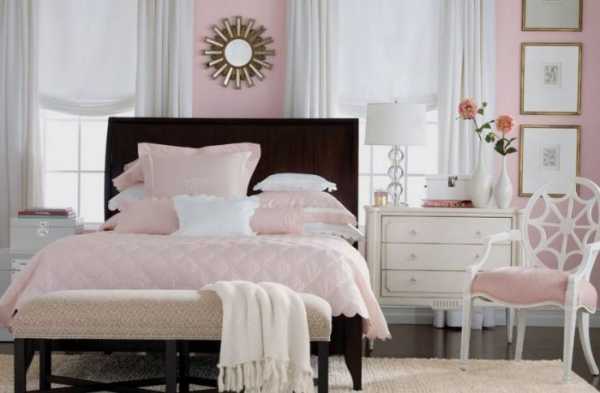 Оформление интерьера спальной комнаты допускается выполнять целиком в розовом стиле, дополняя основной тон его оттенками.