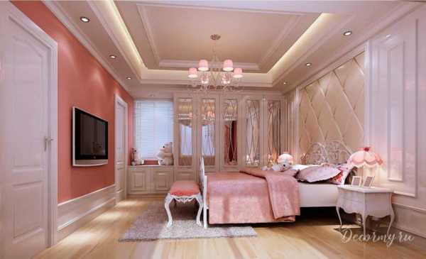 Наиболее спокойным оформлением будет в серо-розовой или бежево-розовой палитре. Для гармоничного образа комнаты, оттенок лучше использовать в деталях, например отделка мебели, портьеры или фрагменты стены.