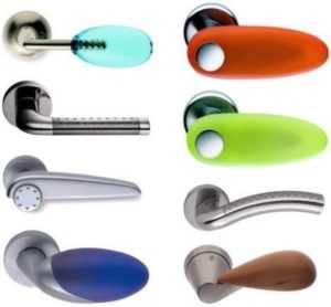 Декоративные вставки дверных ручек могут быть выполнены из любого материала, будь это дерево, резина, стекло. Главное – чтобы сама дверная ручка была металлической.