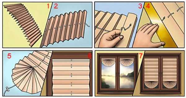 Совет! Чтобы жалюзи прослужили дольше, можно верхний и нижний края согнуть, зафиксировать скотчем или клеем и уже от них начинать сборку гармошки.