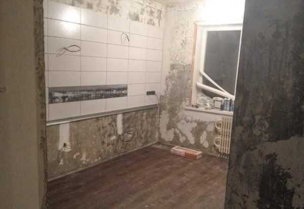 Пока отделка будет сохнуть, чтобы не тратить время, можно начать ремонт пола на кухне. Хрущевка – довольно компактный вариант квартир, и запах свежего бетона очень быстро распространится по всем комнатам.