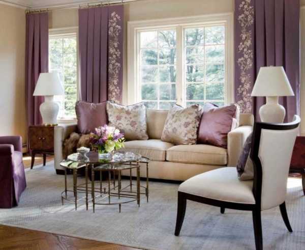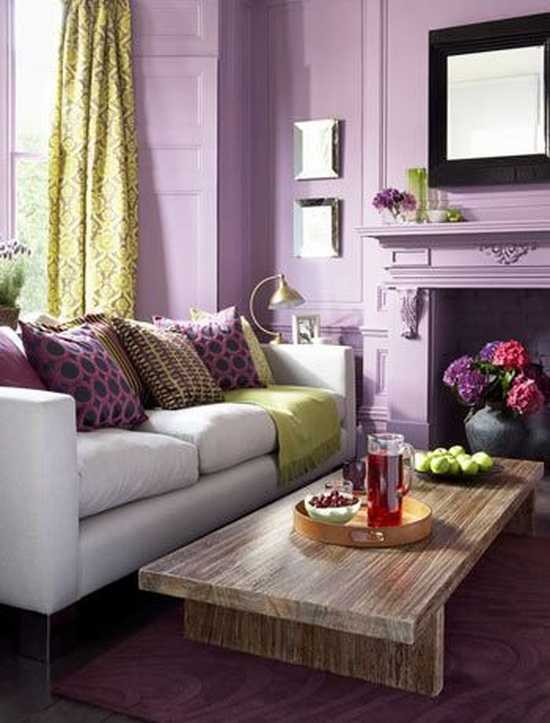 Сиреневый цвет в интерьере гостиной (50 фото)
