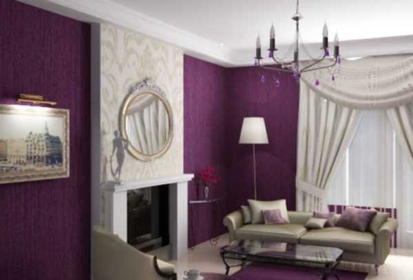 Совет! Дизайнеры рекомендуют не оформлять гостиную исключительно под фиолетовую гамму. Здесь стоит поэкспериментировать с другими оттенками и попытаться отыскать гармоничное сочетание.