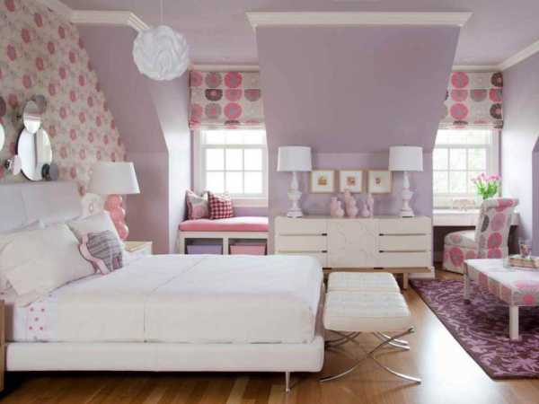 Для нее не рекомендуются яркие цвета для отделки стен. Хорошо смотрятся черно-белые сочетания, дополненные ярко-сиреневыми, фиолетовыми деталями. Это могут быть подушки, портьеры, мягкий пуфик или коврик у кровати. Если хочется сделать сиреневым стены, это должны быть светлые оттенки.