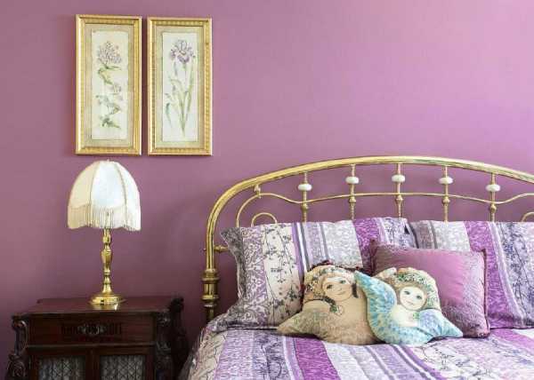 - Подходят для сна и отдыха, поэтому часто стены в сиреневых тонах оформляют в спальне;