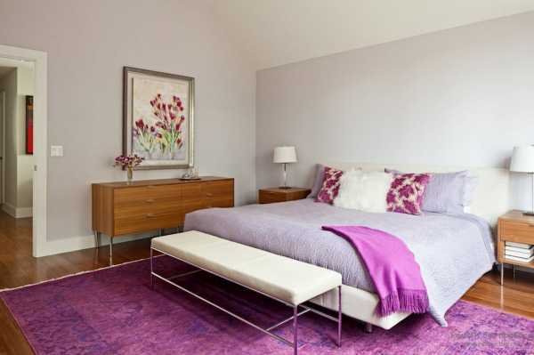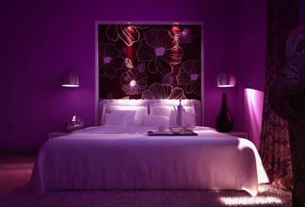 Интерьер спальни очень часто оформляют в лиловых тонах из-за расслабляющих свойств цвета