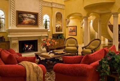 Желтый с красным хороши для интерьеров в ретро стиле: они прекрасно смотрятся в качестве варианта для массивной мягкой мебели в сочетании со столами и шкафами из дерева и золочеными интерьерными деталями. В подобном дизайне лучше брать желтый с примесью коричневого, а не спектрально-яркий.