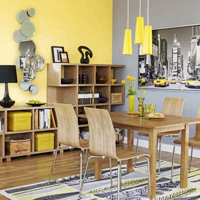 - Чтобы придать интерьеру новый яркий облик, не нужно выкрашивать в желтый все подряд – достаточно добавить пару-тройку ярких акцентов, например, рамки на стене, входная дверь, наклейки для декора или горшки с цветами.