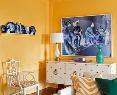Совет: не используйте желтый в отделке объемных площадей (потолка, пола, стен). В чрезмерных количествах данный оттенок весьма активен. Он может подавлять и раздражать присутствующих в комнате людей. Лучше всего его применять в качестве штрихов и акцентов.