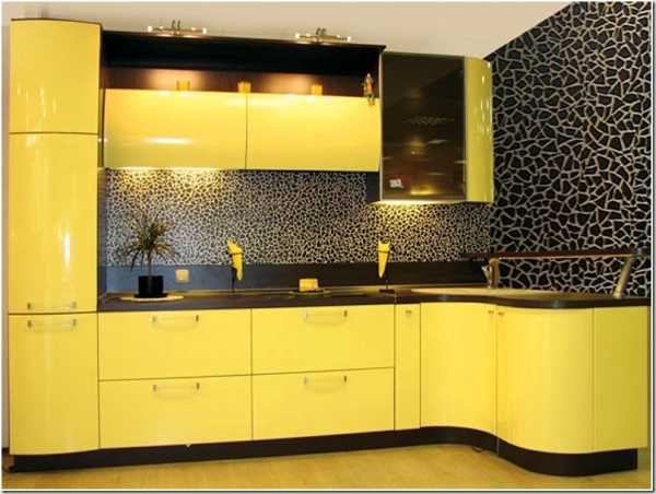 Совет: приобретите кухонный гарнитур с глянцевыми панелями желтого цвета. Он удачно впишется в современный интерьер с присутствующими в нем хромированными деталями, поскольку избыток желтого повышает аппетит, а необычный интерьер улучшает настроение.