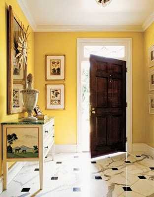 Четвертое место — прихожая! Это место, с которого мы начинаем знакомство с домом, а желтый – это дружелюбный и весьма «уютный» оттенок, который настраивает на хороший лад.
