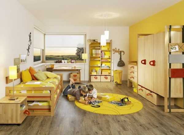 Идеально подойдет желтый цвет для детских комнат. Добавив желтые оттенки в интерьер детской, можно придать ей нарядность, праздничность, веселье. Детскую лучше оформить яркими сочными оттенками желтого либо в сочетании с салатным. Такая цветовая палитра благоприятно сказывается на развитии ребенка, способствуя его активности.
