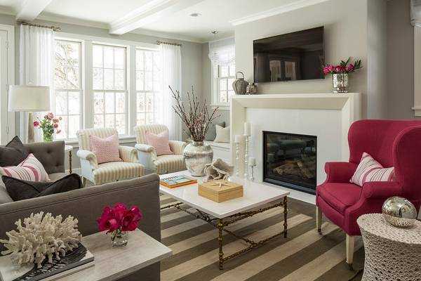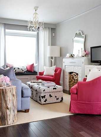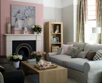 Гостиная в серо-розовых тонах