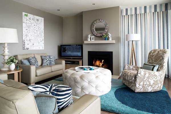 Сочетание серого цвета в интерьере с голубым и синим