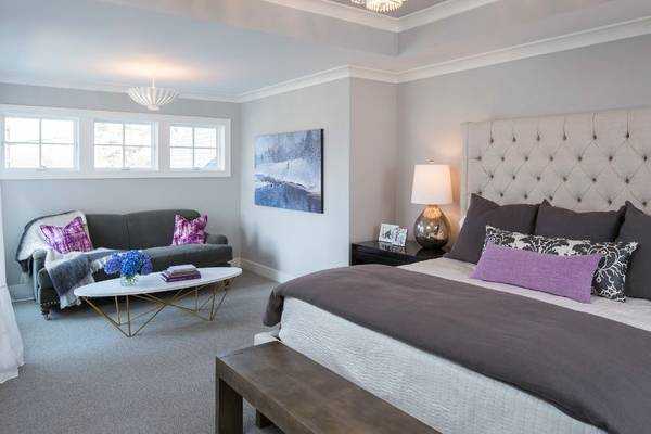 Серый и фиолетовый цвета создают в спальне ауру расслабленности и роскоши!