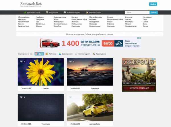 Главное окно сервиса обоев на рабочий стол ZASTAVKI.KOM