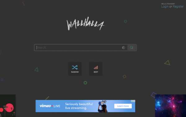 Главное окно сервиса обоев на рабочий стол Wallhalla