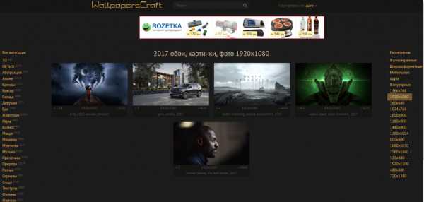 Главное окно сервиса обоев на рабочий стол WallpapersCraft