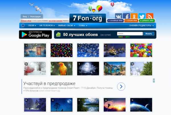 Главное окно сервиса обоев на рабочий стол 7Fon.org