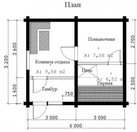 - Проект бани – 6х3 метра.