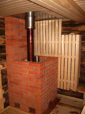Печь-каменка должна находиться в дальнем углу парной. Если вы строите баню своими руками без помощи специалиста, рекомендуется покупать печь-каменку, т.к. ее создание требует специальных навыков и знаний по кладке кирпича, строительству дымохода и т.д.