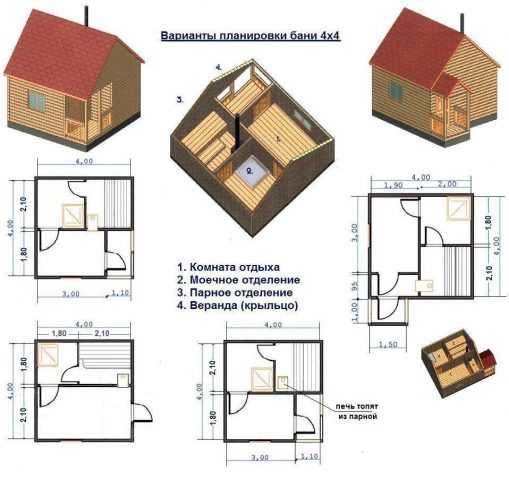 - Проект бани размером – 4х4 метра.