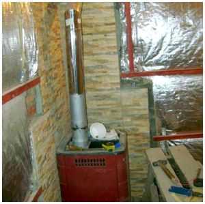 - Изоляция деревянных элементов от перегрева (листовой асбест). Укладываются на стены бани возле печи, а также на доски, находящиеся возле дымоотвода.