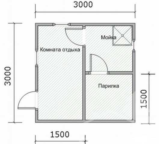 - Проект бани – 3х3 метра.