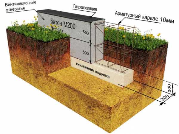Как показала практика, самым надёжным фундаментом практически для всех типов почвы, является бетонный ленточный фундамент, усиленный арматурой.