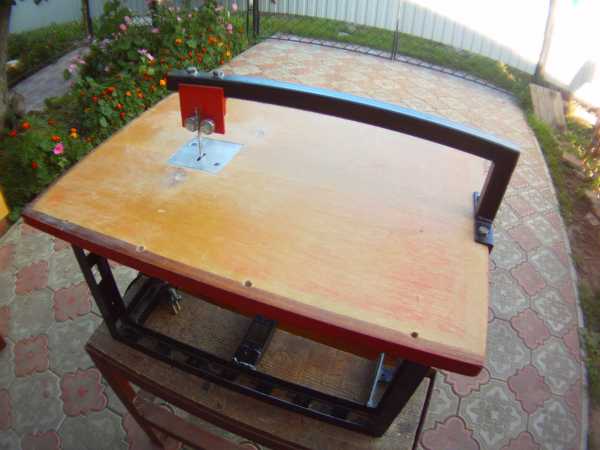 - Теперь занимаемся рабочей поверхностью. Для основания лучше всего подойдет фанера. Вся площадь стола, на которой будет размещен лобзик, должна быть узкой и повторять его контуры.
