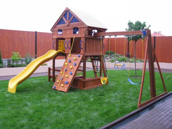 - Игровая площадка для малышей: качели, турник, песочница, небольшой столик со скамейкой.