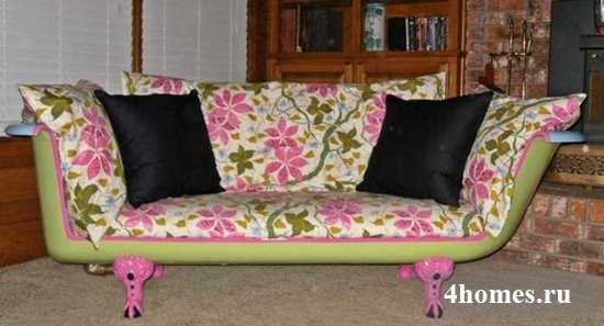 Мебель. Да! В это сложно поверить, но из ванны получается отличная меблировка – диваны и кресла. И не переживайте, если ванна у вас чугунная. При помощи болгарки можно выпилить часть борта, чтобы получился диван или кресло.