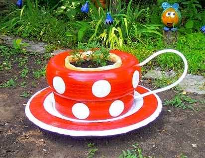 Клумбы из старых покрышек, используемых как в оригинальной форме, так и всевозможно разрезанных, знает каждая хозяйка. А вот сделать «дома» для цветов из старых велосипеда, тачки, автомобиля, обуви или чайника догадается не каждая.