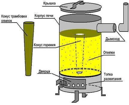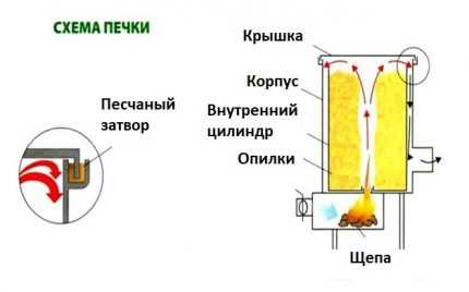 Устройство печки под твердое топливо