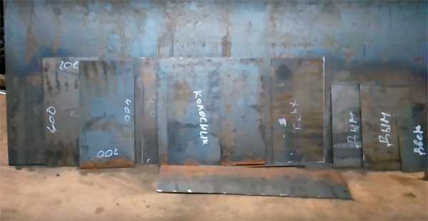 - Из листового металла, толщиной 3-4 мм, с помощью болгарки или электрических ножниц по металлу вырезаем заготовки. Дополнительно потребуется подготовить отрезки уголков для крепления колосника, направляющие для зольника. У вас должна получится конструкция, с большой камерой сжигания дров, небольшой нижней полостью для сбора золы и четвертая часть высоты оставляется для укладки кирпичей и варочной панели. Здесь по разметке привариваются отрезки уголка, для укладки листа металла.