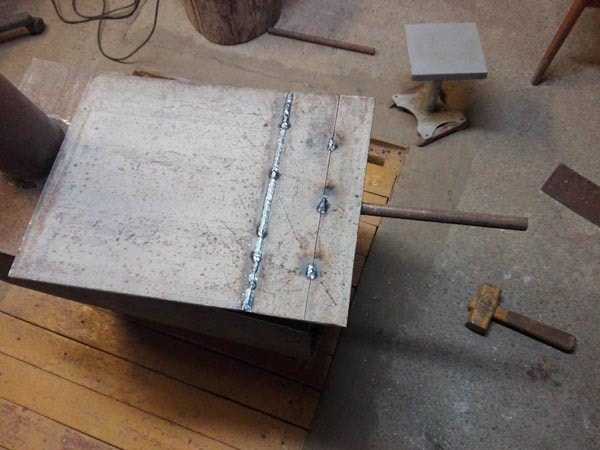 Первый шаг. Сварите стенки корпуса из листовой стали толщиной порядка 4-5 мм. Сверху приварите крышку. Размеры корпуса подбирайте индивидуально в соответствии с площадью отапливаемого помещения.