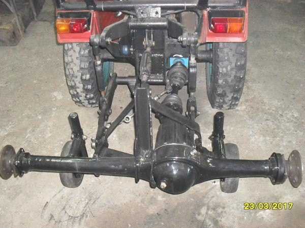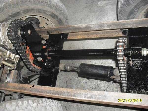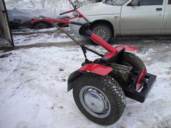 Дополнительная пара колес, разведенных на достаточное (1–1,2 м) расстояние, дает надежную опору. Еще одно преимущество – возможность перевозить грузы в прицепной тележке или смонтированном на задней ведомой оси кузове.