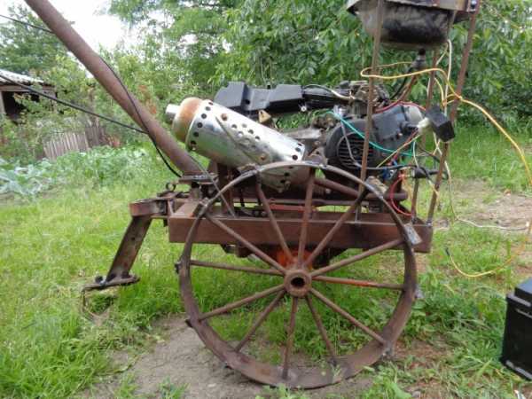 Собранный мотоблок из старых запчастей – это только 50% успеха. Далее, предстоит не менее сложная работа по изготовлению железных колес и навесного оборудования.