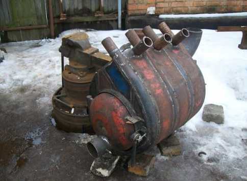 Экономичная печка-буржуйка получается из старой бочки, если сверху к ней приварить теплообменник — конструкцию с дисками, расположенными на определенном расстоянии. В дисках проделываются отверстия для дыма. Благодаря тому, что по своему расположению отверстия в дисках не совпадают, дыму приходится проходить через сложный лабиринт, одновременно нагревая стенки конструкции. Это дает возможность получить дополнительный обогрев.